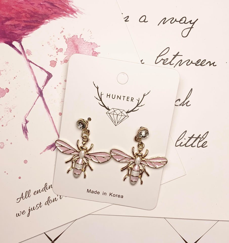 夏日繽紛彩色蜜蜂耳飾(粉白)