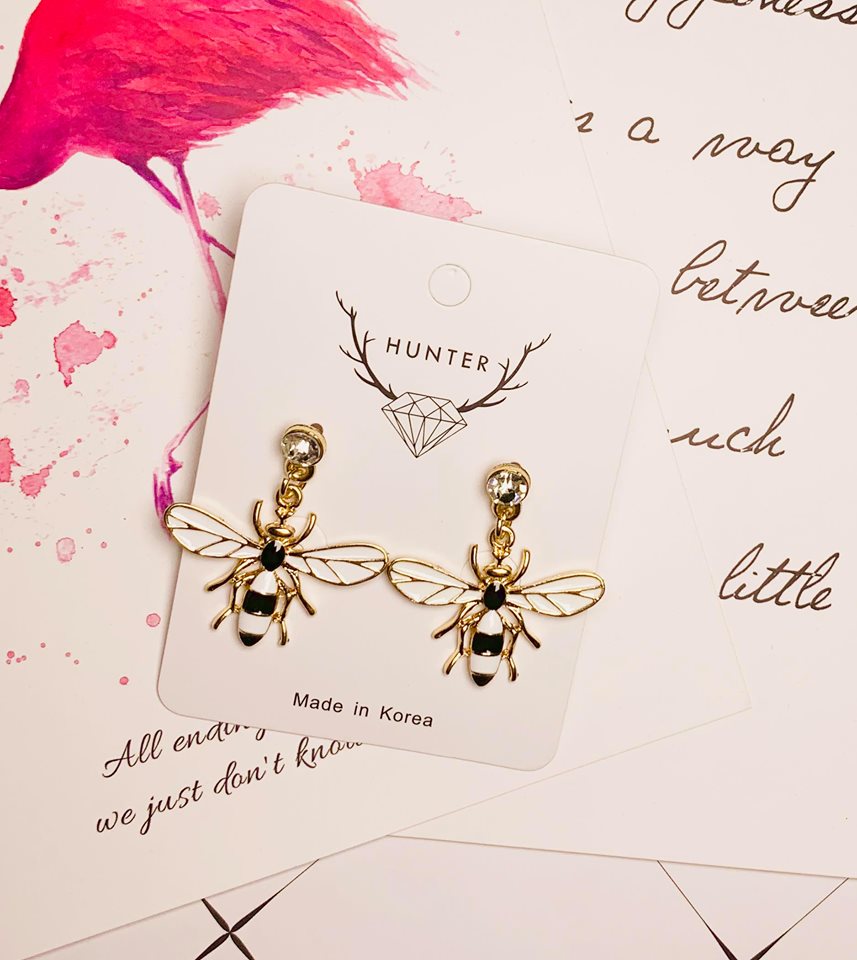 夏日繽紛彩色蜜蜂耳飾(黑白)