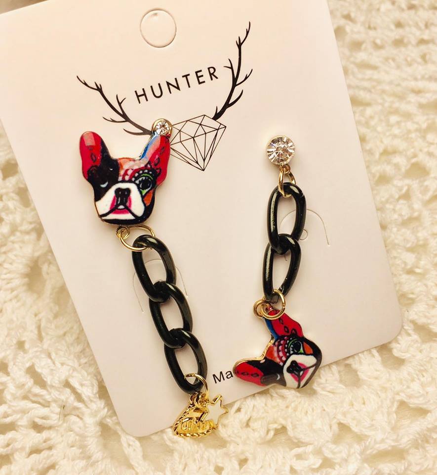 逗趣龐克不對稱彩色法鬥犬耳環