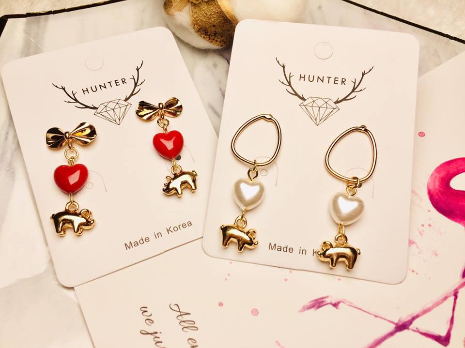 豬年可愛小豬耳環(白愛心款)