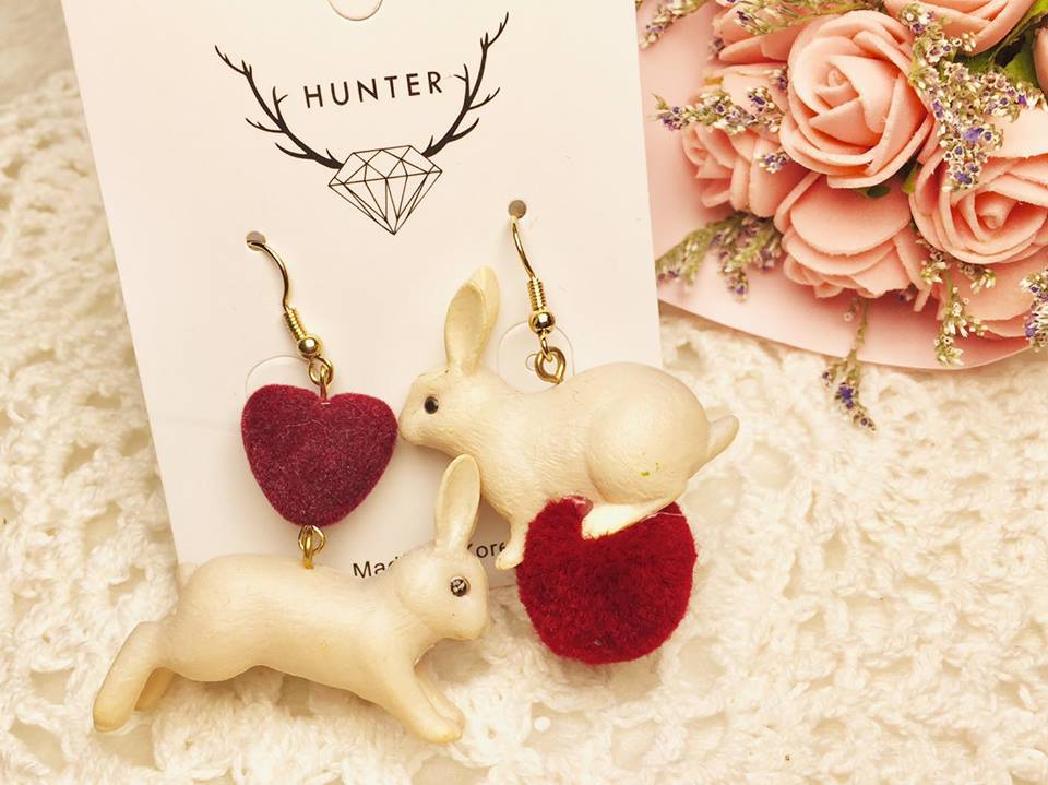 不對稱紅愛心毛球甜美小白兔